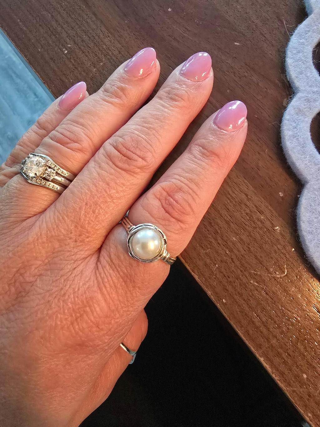 A delicate sterling silver ring with a freshwater pearl that is perfect for stacking or wearing solo. This ring is truly timeless and suitable for everyday wear.